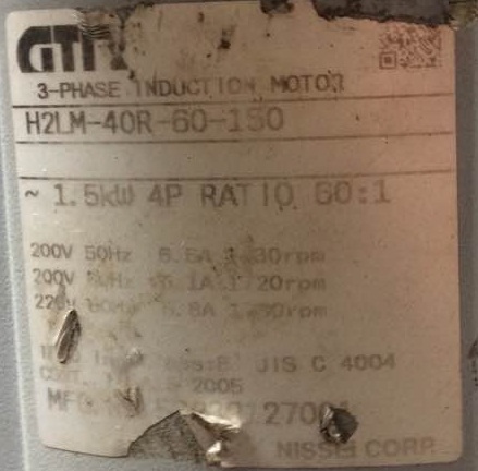 Motor giảm tốc cốt ngang Nhật Bãi Nissey GTR, công suất 1.5kW (2HP), tỷ số truyền 1/60 (~24 vòng/phút), điện áp 380V. Thiết kế chắc chắn, hiệu suất cao, phù hợp cho các ứng dụng công nghiệp.