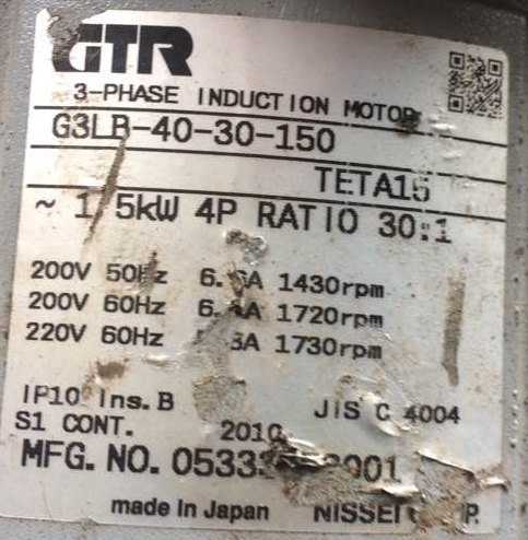 Motor giảm tốc GTR Nhật Cũ 2hp 1/30